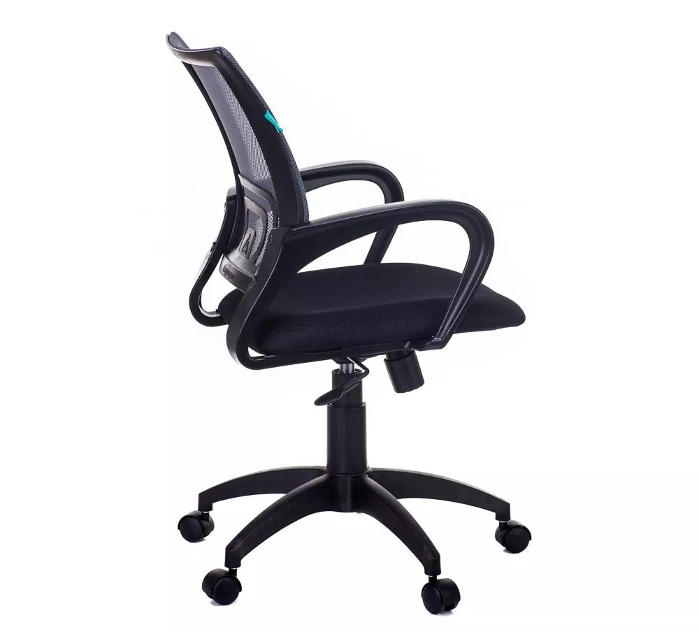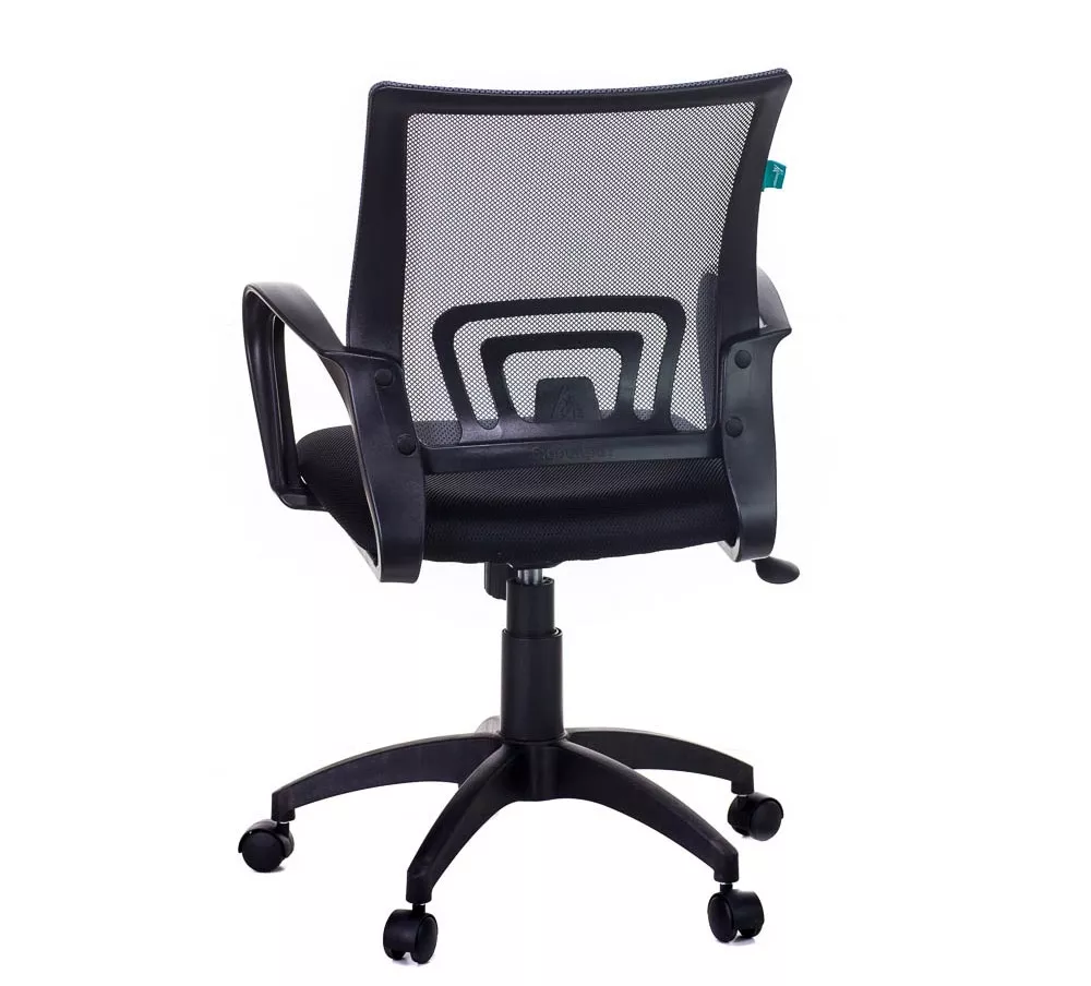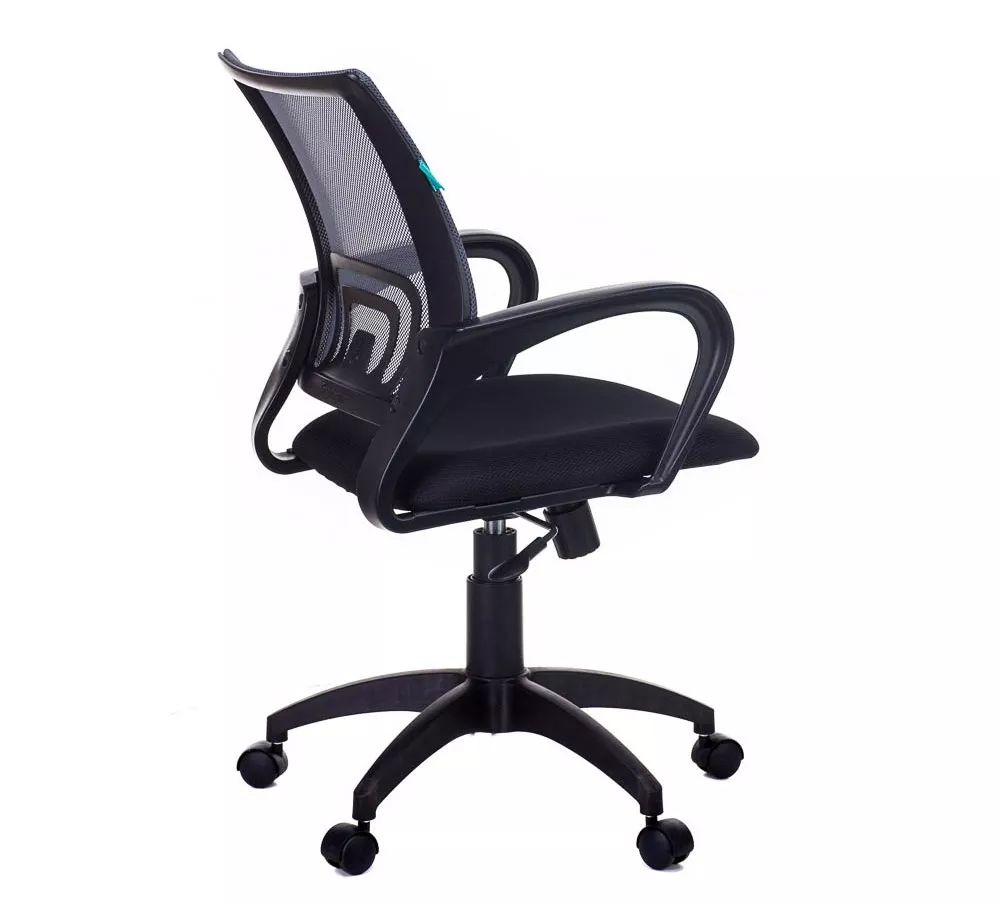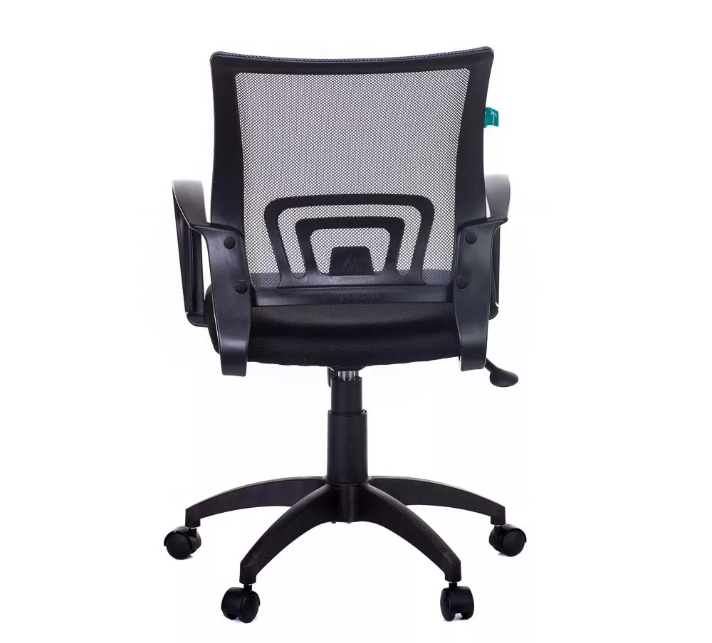 Ткань черного цвета, которой обтянуто сидение кресла, отличается своей прочностью и износостойкостью. Предусмотрен механизм качания. Пятилучевая крестовина изготовлена из прочного пластика. В сочетании с поворотными колесиками, она позволяет креслу легко и бесшумно передвигаться по любому напольному покрытию. Ограничения - вес более 120 кг.