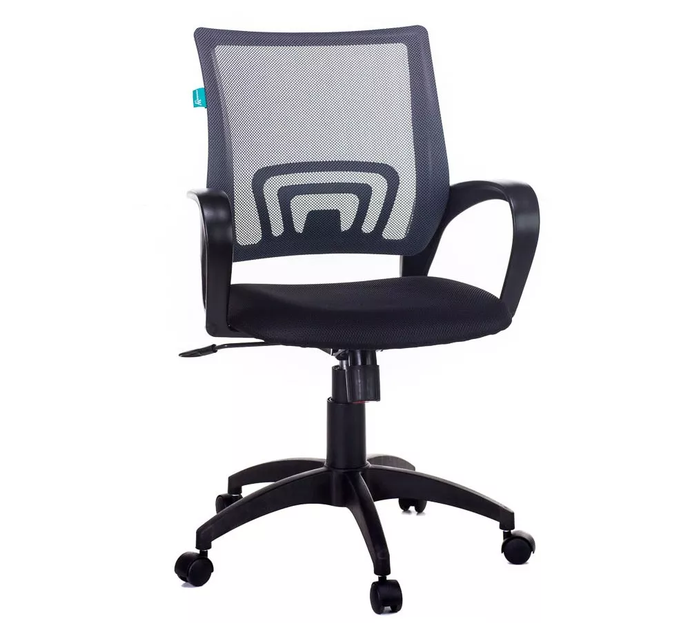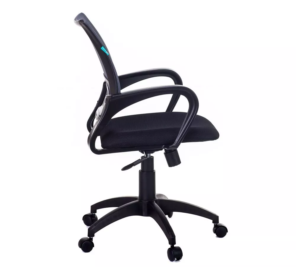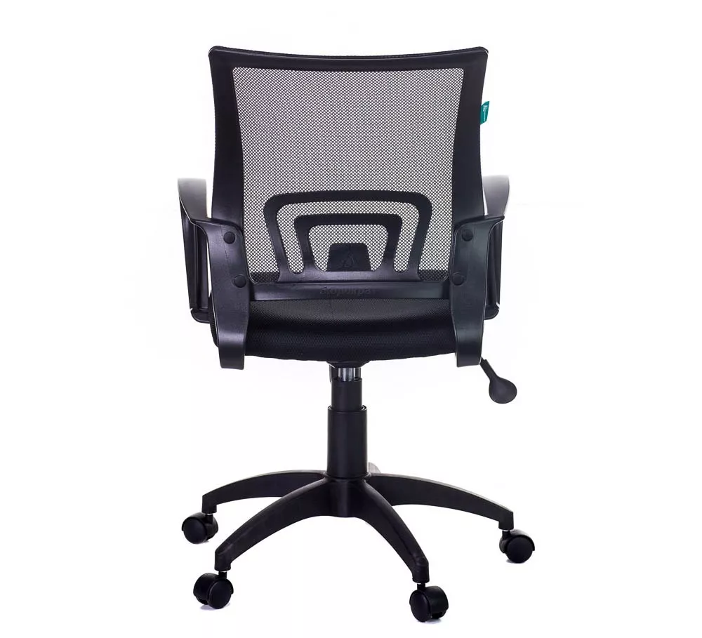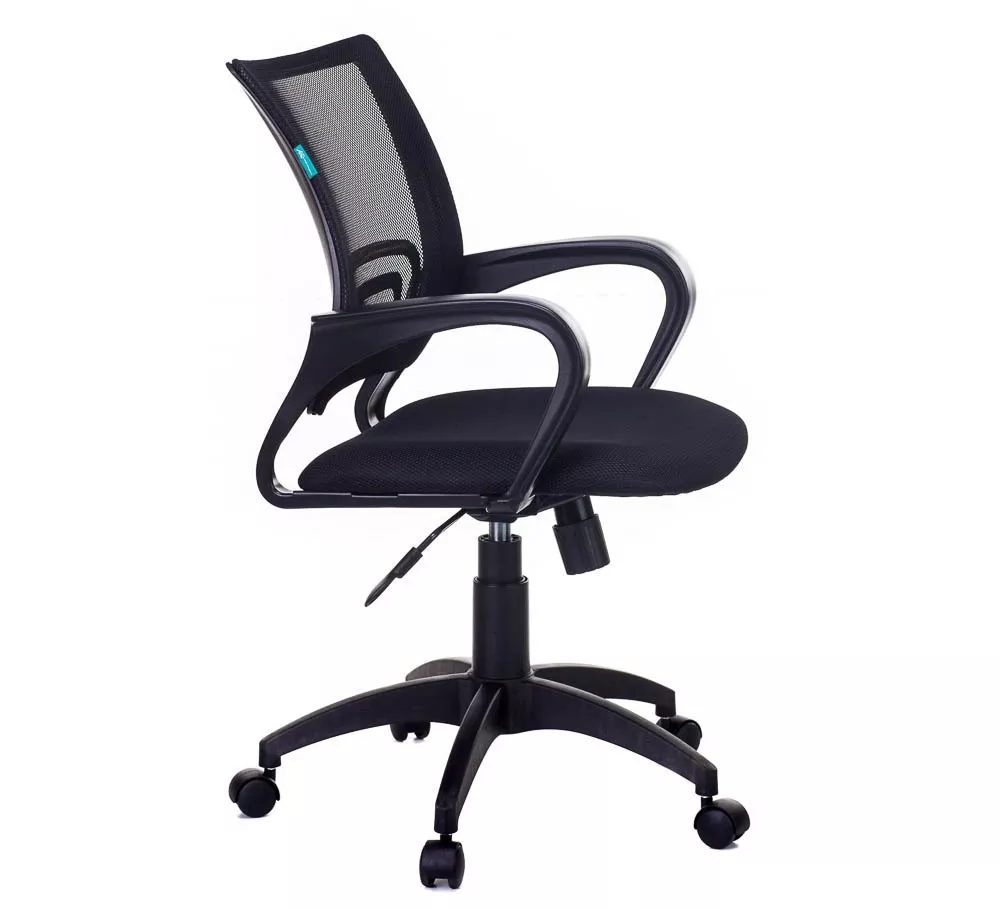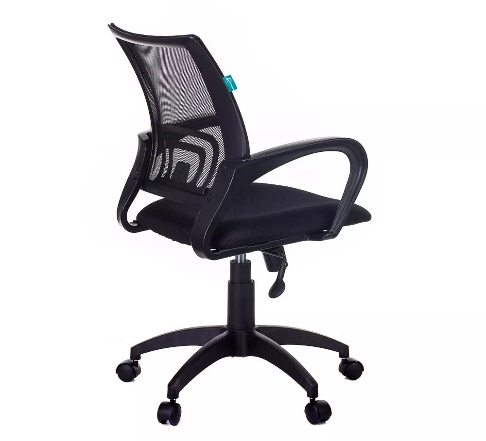 Ткань черного цвета, которой обтянуто сидение кресла, отличается своей прочностью и износостойкостью. Предусмотрен механизм качания. Пятилучевая крестовина изготовлена из прочного пластика. В сочетании с поворотными колесиками, она позволяет креслу легко и бесшумно передвигаться по любому напольному покрытию. Ограничения - вес более 120 кг.