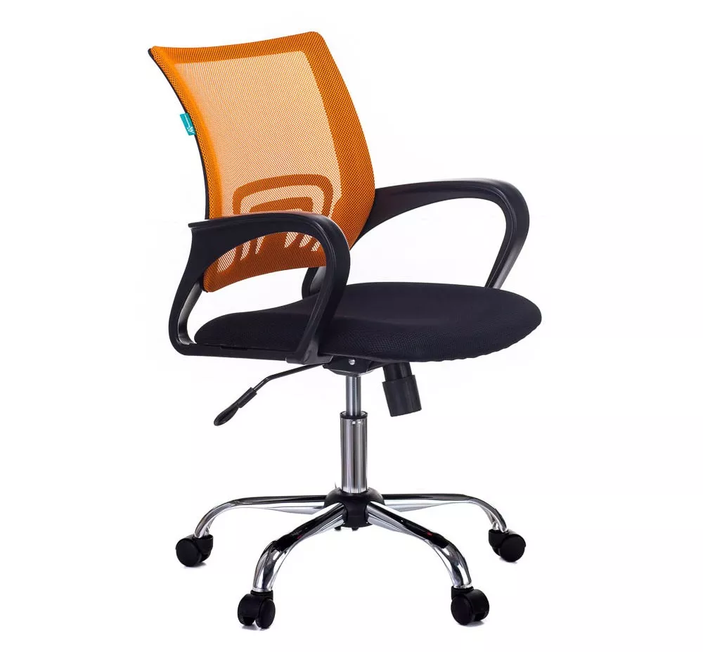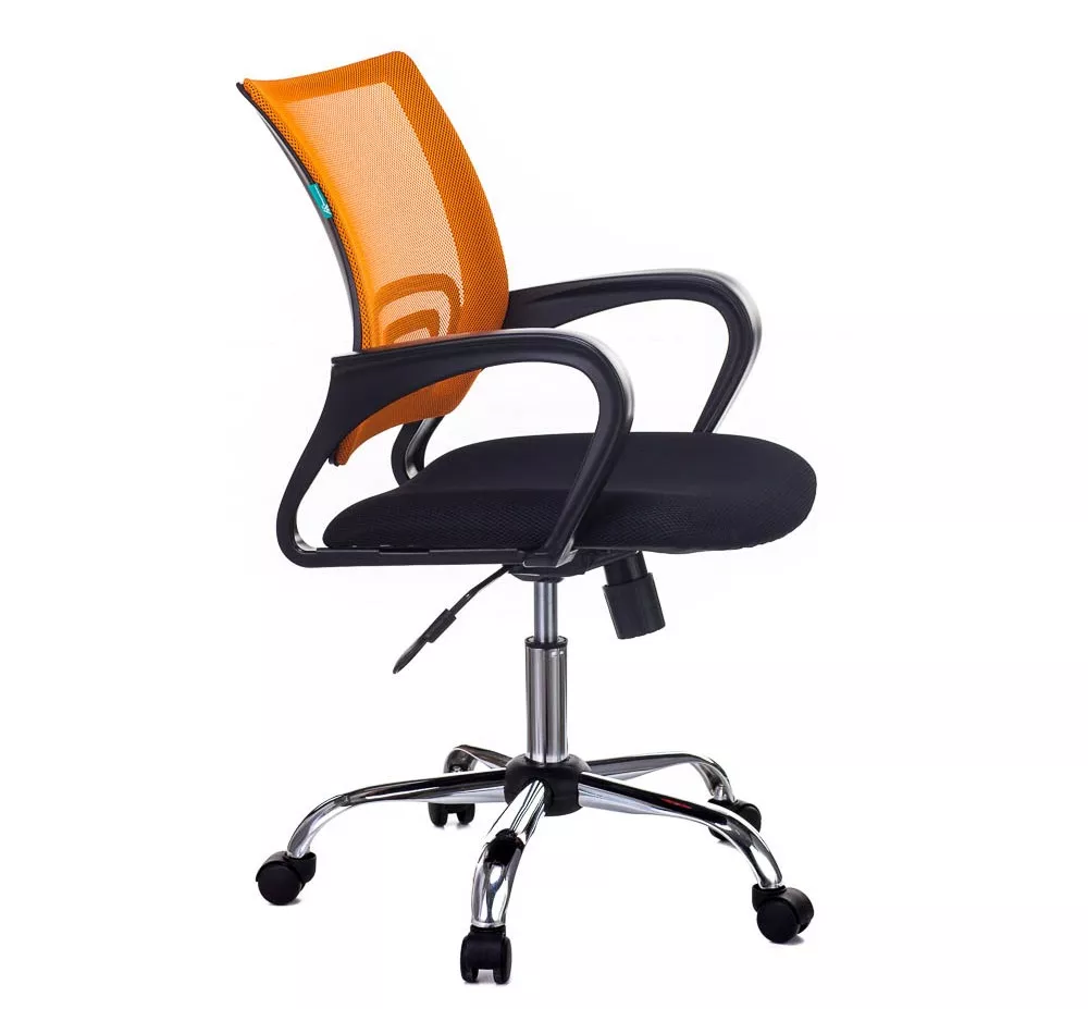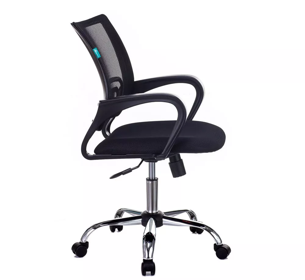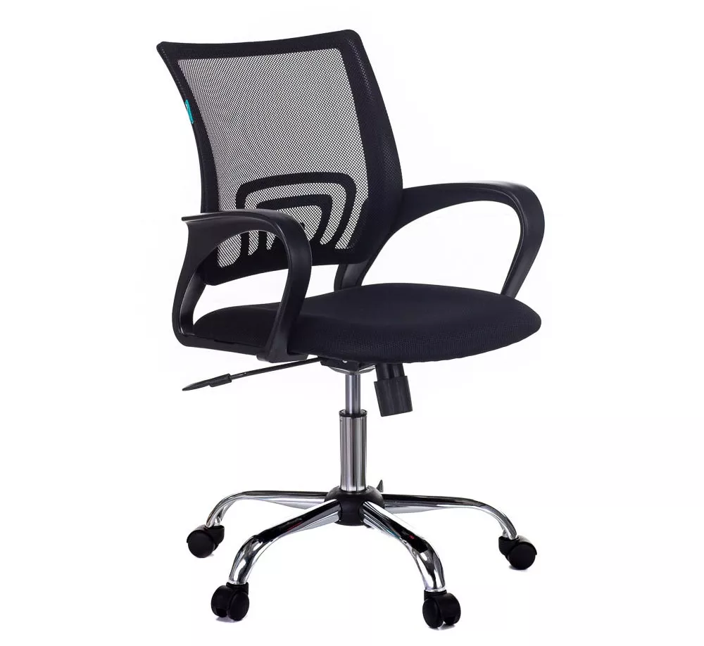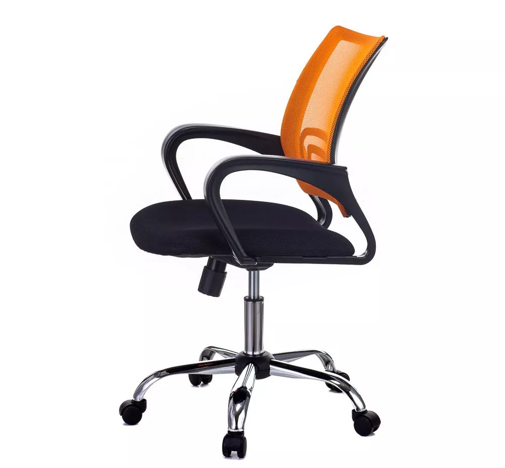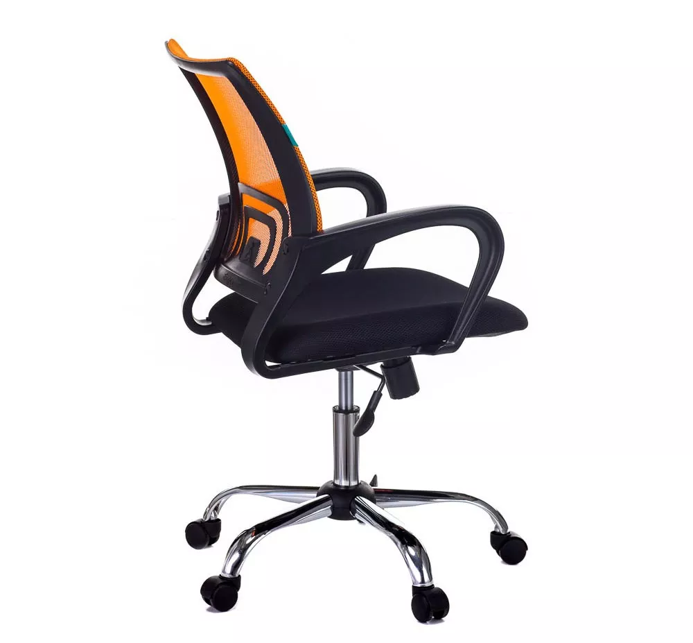Хромированные элементы кресла выглядят стильно в любом интерьере. Для обивки сидения использована ткань, устойчивая к растяжению, истиранию. В лаконичный дизайн изделия прекрасно вписываются пластиковые подлокотники, которые будут очень удобными для владельца кресла. Хромированная пятилучевая крестовина с поворотными колесиками делает