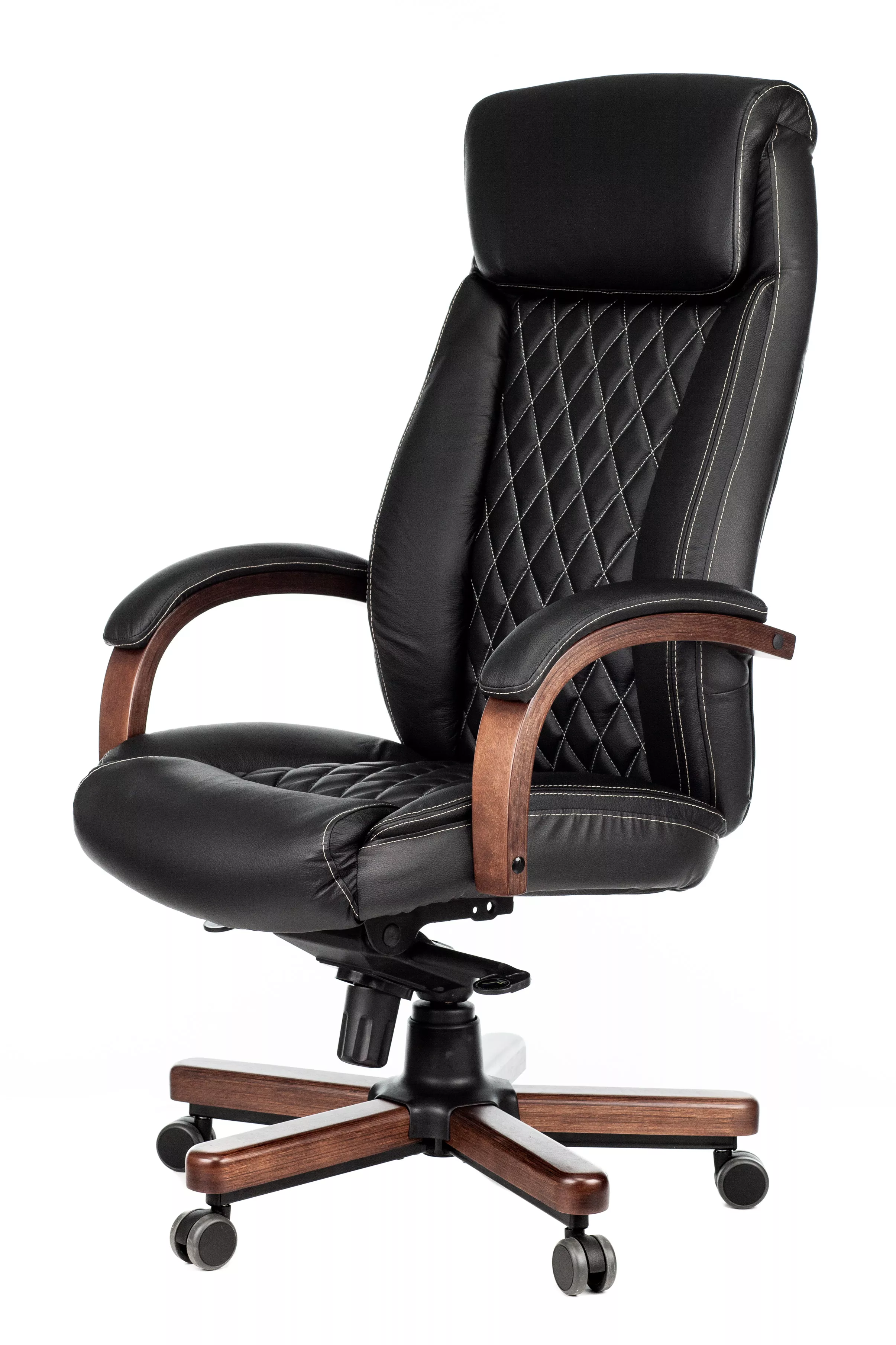 Элегантный дизайн спинки с выпуклыми рельефными боковинами и накладным подголовником обеспечивают удобную мягкую посадку и правильную поддержку спины, без симптомов усталости. Фигурное тиснение «мелкие ромбы» на средней части спинки и сиденья, изогнутые подлокотники с кожаными накладками создают...