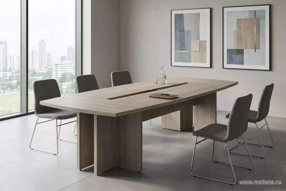 Стол для переговоров Wing - модель премиум-класса, сочетающая стильный дизайн, практичность и функциональность. Презентабельный внешний вид стола, все модули которого имитируют изысканную расцветку натуральной структуры темного или светлого дуба, создает в зале спокойную обстановку, подчеркивая имидж компании.